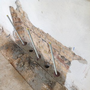 Eingriffsbeschreibung: stabilisierung der Struktur durch injektionen in Expansionsschaum KERASTABLE Typ HDR und einführung von 30 vorspannbaren Mikropfählen MP 60 aus gewallztem Stahl (CE-gekennzeichnetes Prdukt gemäß europäischer Norm EN 1090 1:2009 - europäischer Patent Nr. 2918731)