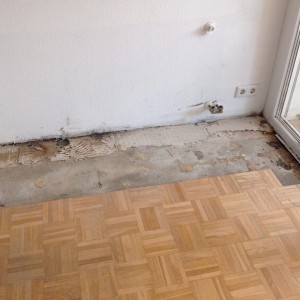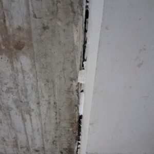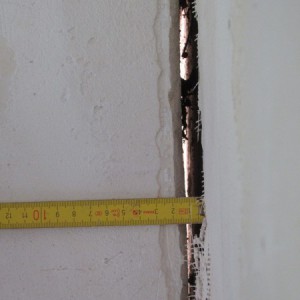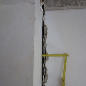 Setzungsursache: Der gesamte Gebäudeteil- Anbau senkt sich von dem Haupthaus ab. Risse wurden schon verspachtelt und geschlossen. Trockenperiode und Volumenänderung des Baugrunds könnten zu der Setzung geführt haben.