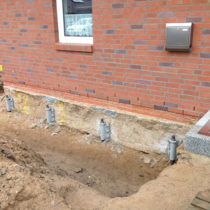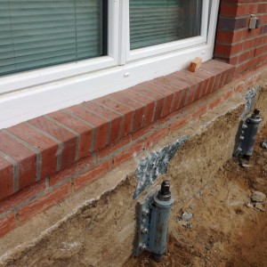 Eingriffsbeschreibung: Stabilisierung von 49 lfm Fundamenten durch Einführung von 27 Mikropfählen auf Montageplatten vorspannbaren Mikropfählen MP60 aus gewallztem Stahl (CE-gekennzeichnetes Prdukt gemäß europäischer Norm EN 1090 1:2009 - europäischer Patent Nr. 2918731) und 36 Injektionen aus Expansionsschaum.