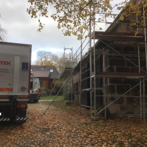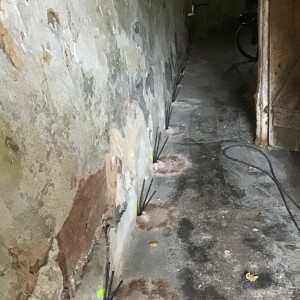 Eingriffsbeschreibung: Stabilisierung der Scheune durch 56 Hochdruck-Injektionen KERASTABLE HDR auf drei Untergrundebenen