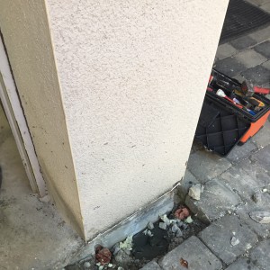Eingriffsbeschreibung: Anhebung +6.5 cm des Bauwerks durch 13 MP-60 Mikropfähle aus gewallztem Stahl (CE-gekennzeichnetes Produkt gemäß europäischer Norm EN 1090-1:2009 - europäischer Patent 2918731) und Verfüllung des Hohlraums durch Injektionen KERASTABLE HDR