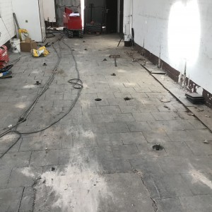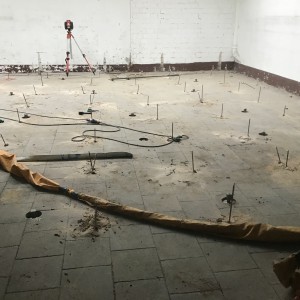 Setzungsursache und Ortung: Im gesamten Hallenbereich D3 ist es zur Setzung an den Fußboden gekommen.