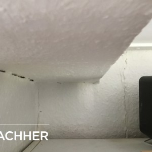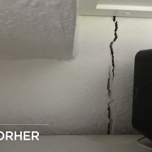 Setzungsursache und Ortung: Neigung des Anbaus vom Gebaeude. Ursache kann an den bindigen Untergrund liegen das waehrend langen Trockenperiode schrumpfen kann und an Stabilitaet verliert. Gewaechs in der Naehe kann durch Wurzeln den Wassergehalt im Untergrund reduzieren.