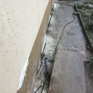 Eingriffsbeschreibung: Stabilisierung der Fundamente auf 20 Laufmeter mit 18 Mikropfaehlen MP60 aus Stahl (CE-gekennzeichnet nach EN1090-1:2009) und Injektionen von expandierten Polymeren KERASTABLE® Art HDR®  (High Density Resins) .