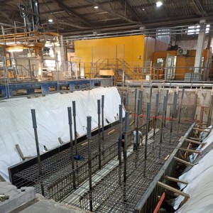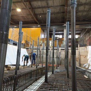 Eingriffsbeschreibung: Stabilisierung des Baugrunds un der Fundamente auf 59 lfm mit No. 20 Mikropfählen aus Stahl (CE-gekennzeichnet nach EN1090-1:2009) vorgespannt (Europäisches Patent Nr. 2918731B1) durch spezielle "Stahlhülsen", die in das neu- zu errichtende Fundament eingefügt werden.