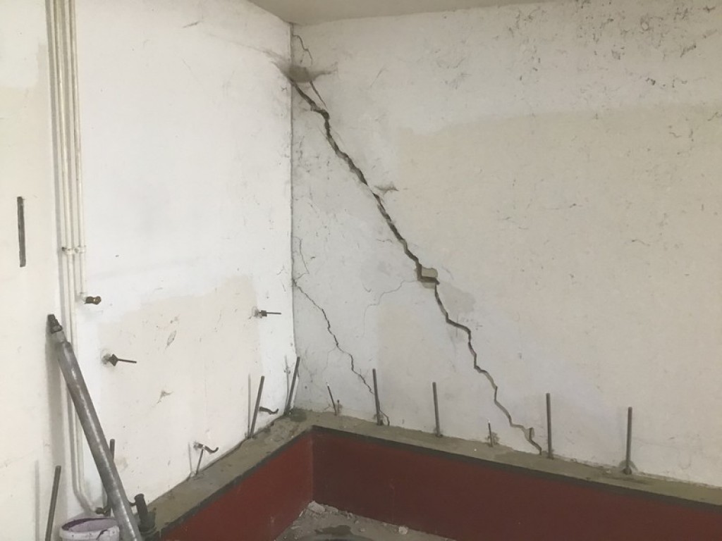 Eingriffsbeschreibung: Stabilisierung des Baugrunds und der Fundamente auf 25 lfm mit Nr. 17 Mikropfählen aus Stahl (CE-gekennzeichnet nach EN1090-1:2009) und Injektionen von expandierten Polymeren KERASTABLE Art HDR (High Density Resins).